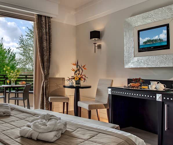 La Camera Luxury offre un’esperienza di puro comfort: spazi eleganti con finiture di pregio, terrazzo con la migliore vista sul parco e un set cortesia completo con accappatoi, bollitore e minibar fornito. Ideale per chi ama concedersi un tocco di lusso in totale relax.