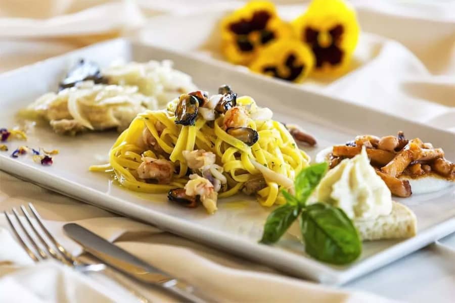 A pochi passi dall'hotel, immerso nello stesso parco, il Ristorante Da Odino propone una cucina veneta autentica. I piatti di pesce sono il punto forte del menù, accompagnati da proposte di terra e opzioni vegetariane e vegane. Si tratta di un posto che consigliamo se desideri assaggiare i piatti tipici locali.